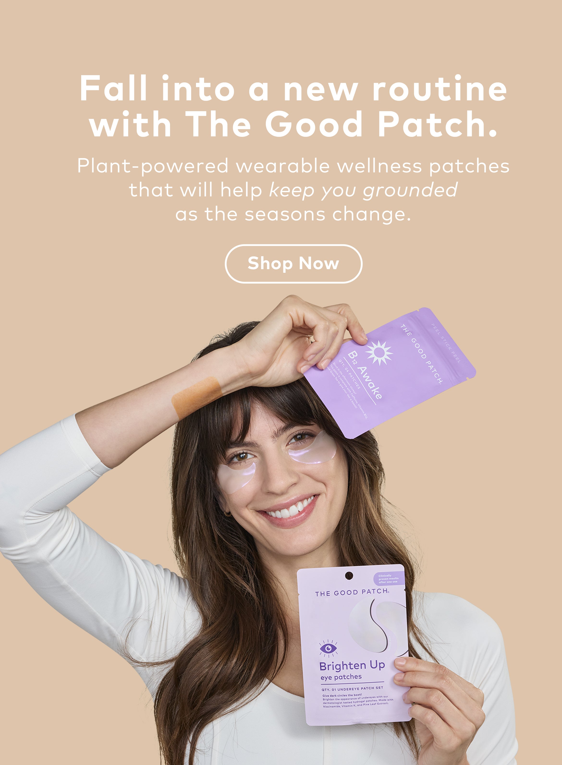 The Good Patch is a brand of plant-powered wearable wellness patches designed to help with life’s daily struggles. We offer better-for-you alternatives that help you feel good - one patch at a time. Whether you need some pep in your step, quality zzz’s, or relief from minor aches and pains, we’ve got you covered. With over 15 patches to choose from, we’ve got a patch for whatever life throws your way.