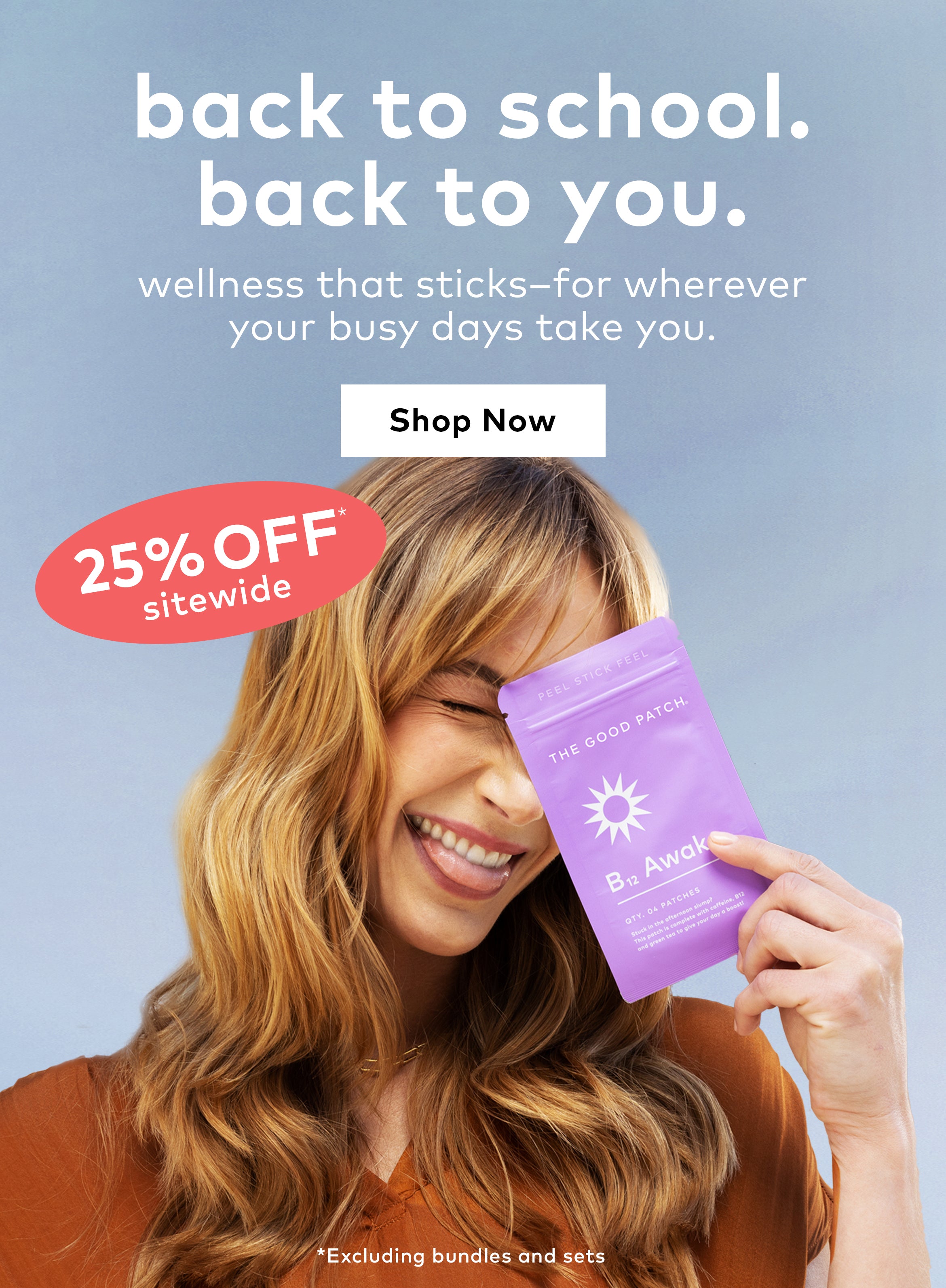 The Good Patch is a brand of plant-powered wearable wellness patches designed to help with life’s daily struggles. We offer better-for-you alternatives that help you feel good - one patch at a time. Whether you need some pep in your step, quality zzz’s, or relief from minor aches and pains, we’ve got you covered. With over 15 patches to choose from, we’ve got a patch for whatever life throws your way.