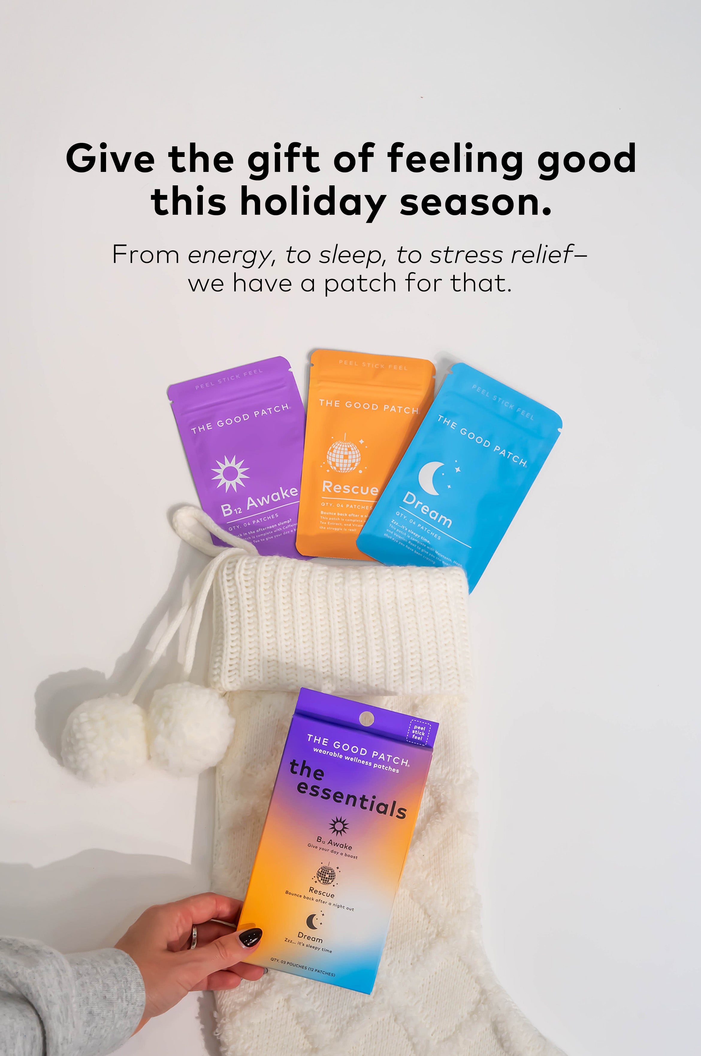 The Good Patch is a brand of plant-powered wearable wellness patches designed to help with life’s daily struggles. We offer better-for-you alternatives that help you feel good - one patch at a time. Whether you need some pep in your step, quality zzz’s, or relief from minor aches and pains, we’ve got you covered. With over 15 patches to choose from, we’ve got a patch for whatever life throws your way.